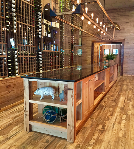 The new concept we helped to develop is a farm to table concept that includes a Sea Food Docks-to-Table theme. Our choices of finishes include re-claimed lumber and natural accents. The over-the-top raw bar sets the tone and the custom designed lights and furniture make for a comfortable elegance.