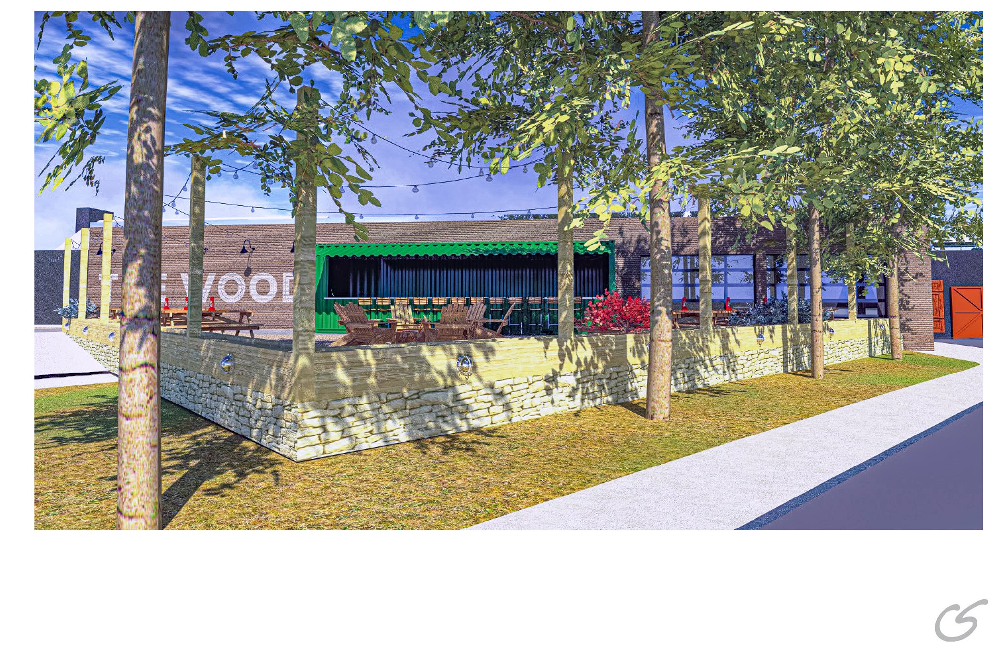 All of it, from the real flickering-flame accents to the buff orange waveform awning out front, came from Cahill’s head and had to be custom-made.